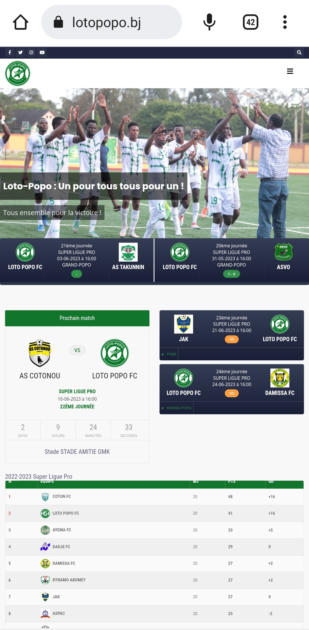 Dans un cadre fluide et interactif le site lotopopo.bj prend désormais les rênes pour porter encore plus loin l’ambition du club. Elle vise également à créer un lien fort entre aficionados et acteurs du club. Toutes les informations relatives aux performances du club sont disponibles en première ligne sur le site.